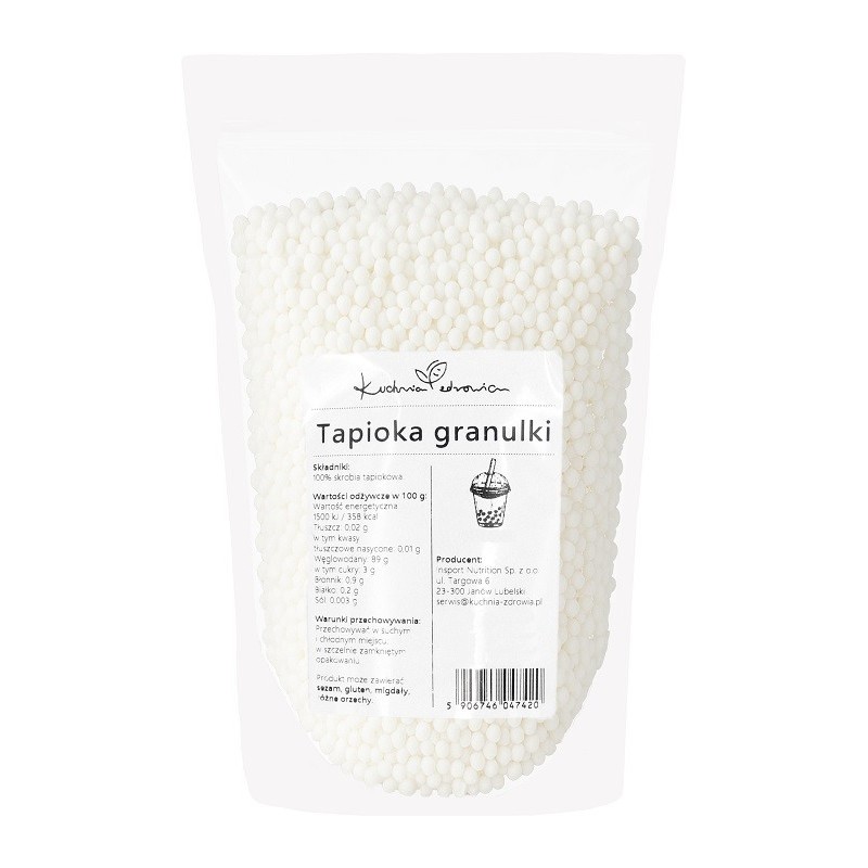 ✅Tapioka granulki to doskonały dodatek do napojów typu bubble tea, który charakteryzuje się delikatnym smakiem i atrakcyjnym wyglądem. Wytwarzana ze skrobi manioku, cechuje się neutralnym aromatem, dzięki czemu łatwo wchłania smaki innych składników. Jest też bezglutenowa, co stanowi atut dla osób na diecie eliminacyjnej.