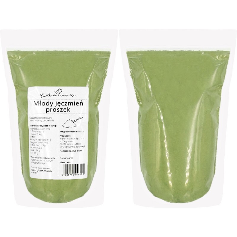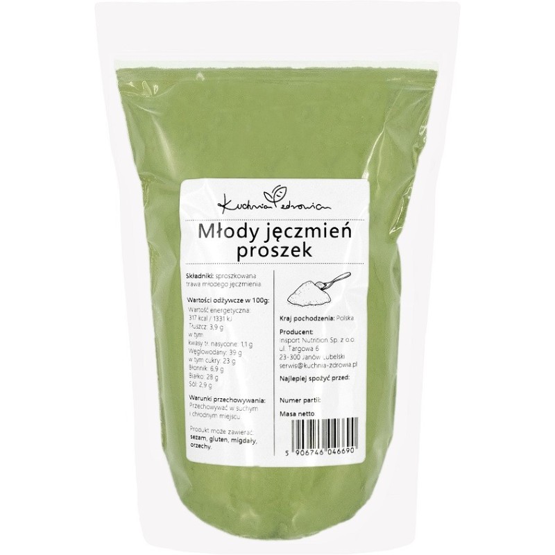 Młody jęczmień w proszku to suszone i zmielone młode pędy jęczmienia, które są bogatym źródłem składników odżywczych, takich jak witaminy, minerały, błonnik i chlorofil. Ze względu na swoje właściwości oczyszczające, jest popularnym produktem stosowanym w celu detoksykacji, poprawy trawienia oraz wzmocnienia układu odpornościowego. Młody jęczmień jest szczególnie ceniony za swój korzystny wpływ na energię, witalność i ogólne samopoczucie.