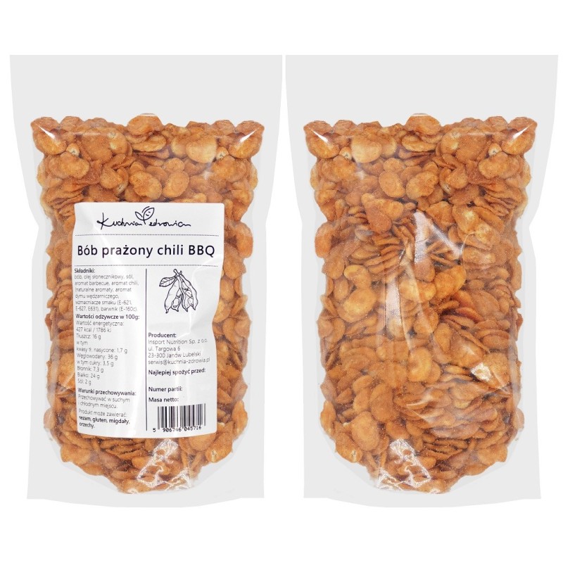➡️Składniki: bób, olej słonecznikowy, sól, aromat barbecue, aromat chili (naturalne aromaty, aromat dymu wędzarniczego, wzmacniacze smaku (E-621, E-627, E-631), barwnik (E-160c).
