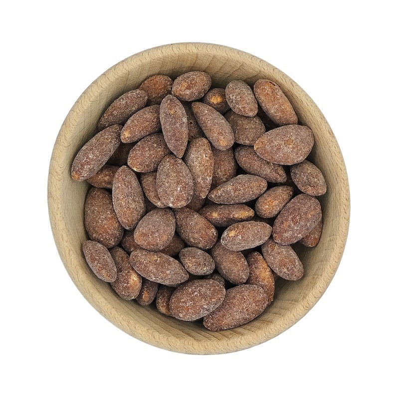 ✔️Tak, prażenie zmienia strukturę i smak migdałów, a dodatek cynamonu i cukru trzcinowego nadaje im wyjątkowego aromatu, czyniąc je nieco słodszymi i bardziej chrupiącymi.