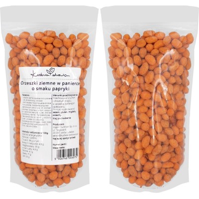 ✅Orzechy ziemne w panierce paprykowej to połączenie głębokiego, dymnego aromatu papryki z naturalną słodyczą orzecha. Każdy kęs oferuje charakterystyczne, długotrwałe chrupnięcie, dzięki czemu produkt sprawdzi się zarówno solo, jak i w roli kulinarnego dodatku. Idealny balans przypraw sprawia, że trudno poprzestać na garści.
