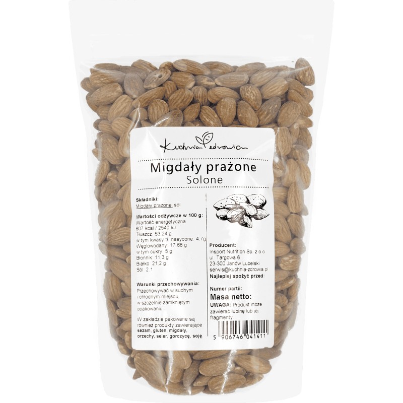 Migdały prażone solone Kuchnia Zdrowia to propozycja dla osób, które lubią proste składy i zdecydowany, przekąskowy smak. Prażenie podkreśla naturalny charakter migdałów, a dodatek soli nadaje im wyrazistości. To produkt, który dobrze sprawdza się zarówno jako samodzielna przekąska, jak i element prostych kompozycji podawanych na co dzień.