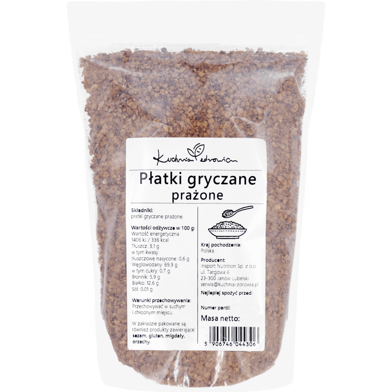 Płatki gryczane prażone to zdrowy i pożywny produkt, który doskonale sprawdzi się jako podstawa wielu odżywczych śniadań i przekąsek. Wyprodukowane są z najlepszej jakości gryki, która została delikatnie uprażona, aby uwydatnić jej głęboki, orzechowy smak i aromat. Płatki gryczane prażone są bogate w białko, błonnik oraz zawierają kluczowe witaminy i minerały, w tym magnez, potas i żelazo, wspierające zdrowe funkcjonowanie organizmu.