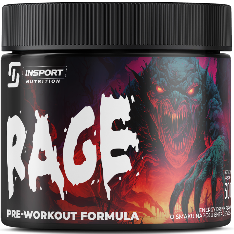 Insport Nutrition RAGE to suplement diety w proszku opracowany jako wsparcie przedtreningowe. Zawiera zestaw aminokwasów (cytrulina, beta-alanina, AAKG, tauryna, tyrozyna), kofeinę oraz ekstrakty roślinne (różeniec górski, gorzka pomarańcza, pieprz czarny). Formuła została dodatkowo wzbogacona witaminą B6, która pomaga zmniejszyć uczucie zmęczenia oraz wspiera prawidłowe funkcjonowanie układu nerwowego. Produkt przeznaczony jest dla osób aktywnych, które poszukują uzupełnienia diety o składniki wspierające organizm w trakcie intensywnego treningu.