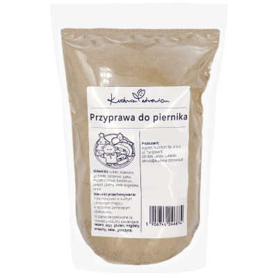 Składniki: cukier, kolendra, goździki, cynamon, gałka muszkatołowa, kardamon, pieprz czarny, ziele angielskie