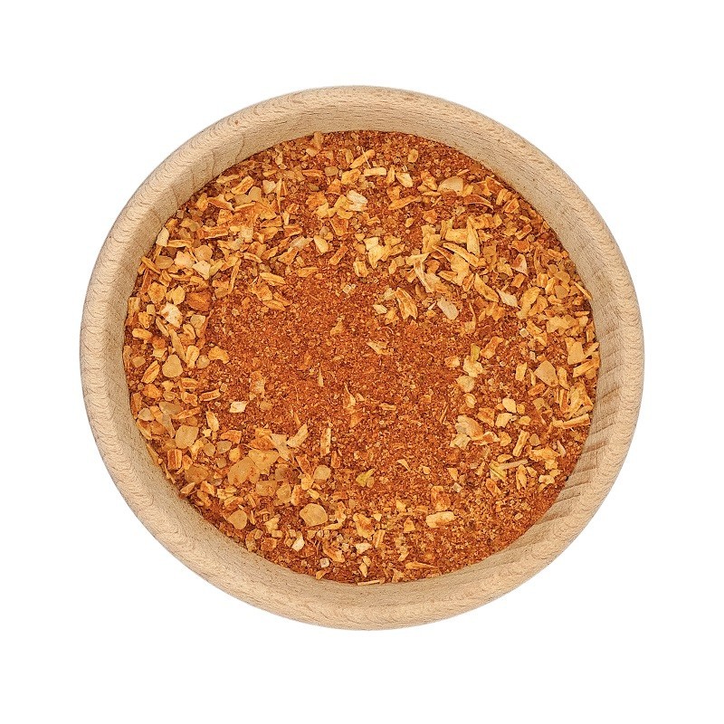 ➡️ Składniki: warzywa suszone (czosnek, cebula, pomidor), przyprawy (papryka, pieprz cayenne, oregano, kminek, kolendra, cynamon, goździki), glutaminian sodu (wzmacniacz smaku), sól, cukier.