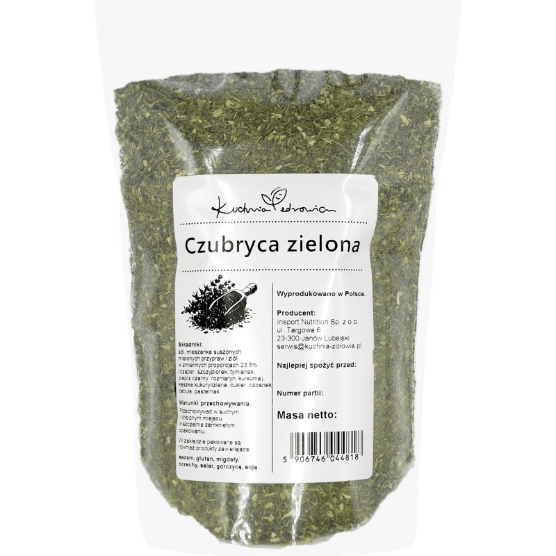 Dzięki obecności czosnku, cebuli i pasternaku mieszanka dobrze podkreśla smak dań obiadowych, warzyw oraz przekąsek na ciepło. Czubryca zielona sprawdza się zarówno podczas gotowania, jak i pieczenia czy przygotowywania marynat.
