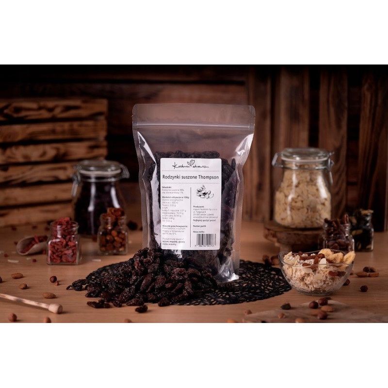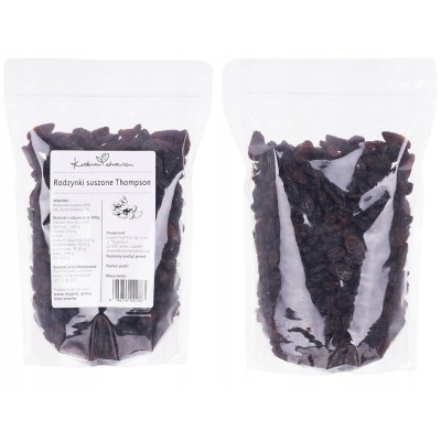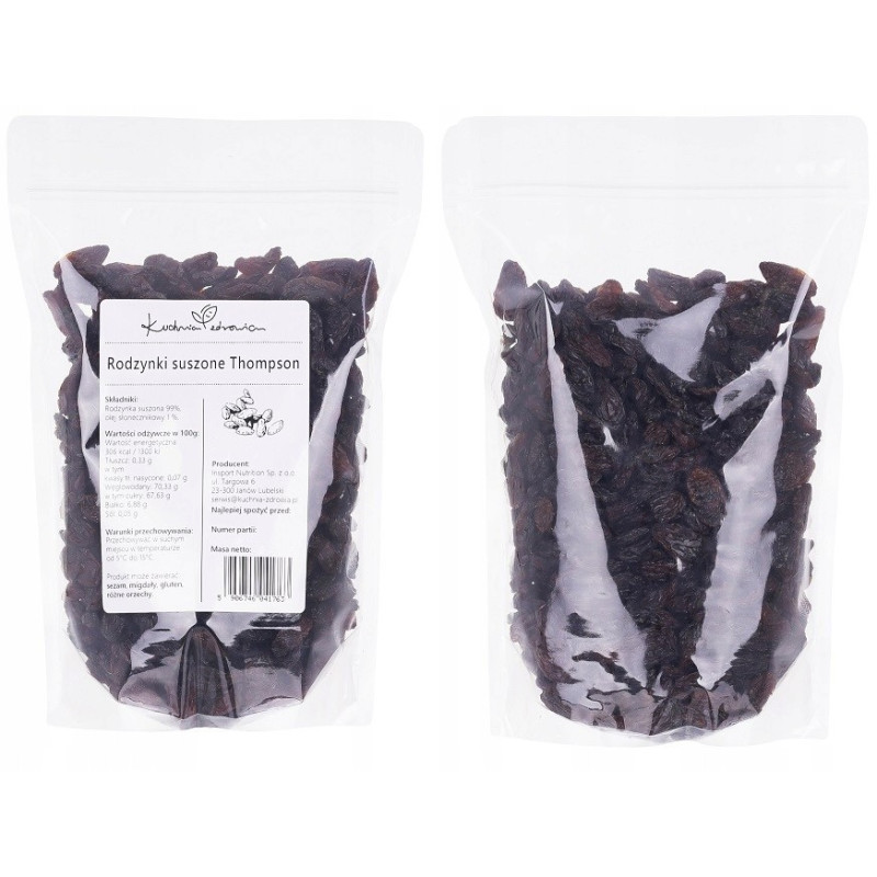 Rodzynki Thompson, czyli suszone winogrona to jedne z najpopularniejszych bakalii. Wytwarzane są z wyselekcjonowanych odmian winogron, które suszone na słońcu, zachowują wszystkie walory odżywcze i swój wyjątkowy słodki smak.