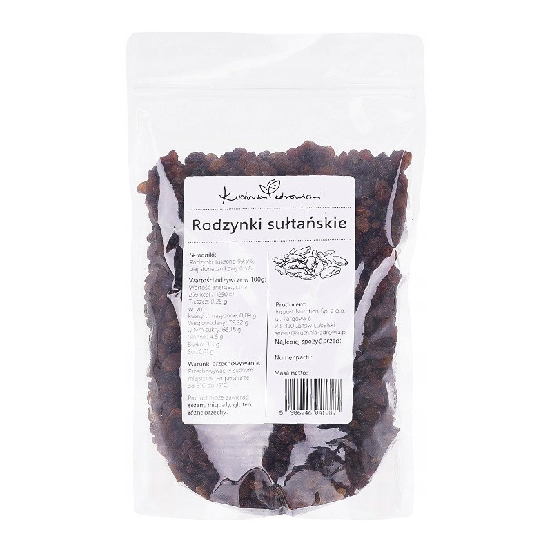 Składniki: Rodzynki suszone 99,5%, olej słonecznikowy max. 0,5%