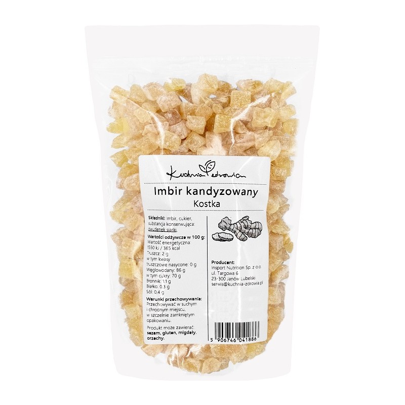 ✅ Imbir kandyzowany kostka to pyszny i praktyczny dodatek do Twojej kuchni. Jego słodko-korzenny smak wspaniale ożywia ulubione przepisy, a wygodna postać kostki zdecydowanie ułatwia porcjowanie. Wybierz ten produkt, aby cieszyć się intensywnym aromatem imbiru w różnorodnych daniach.
