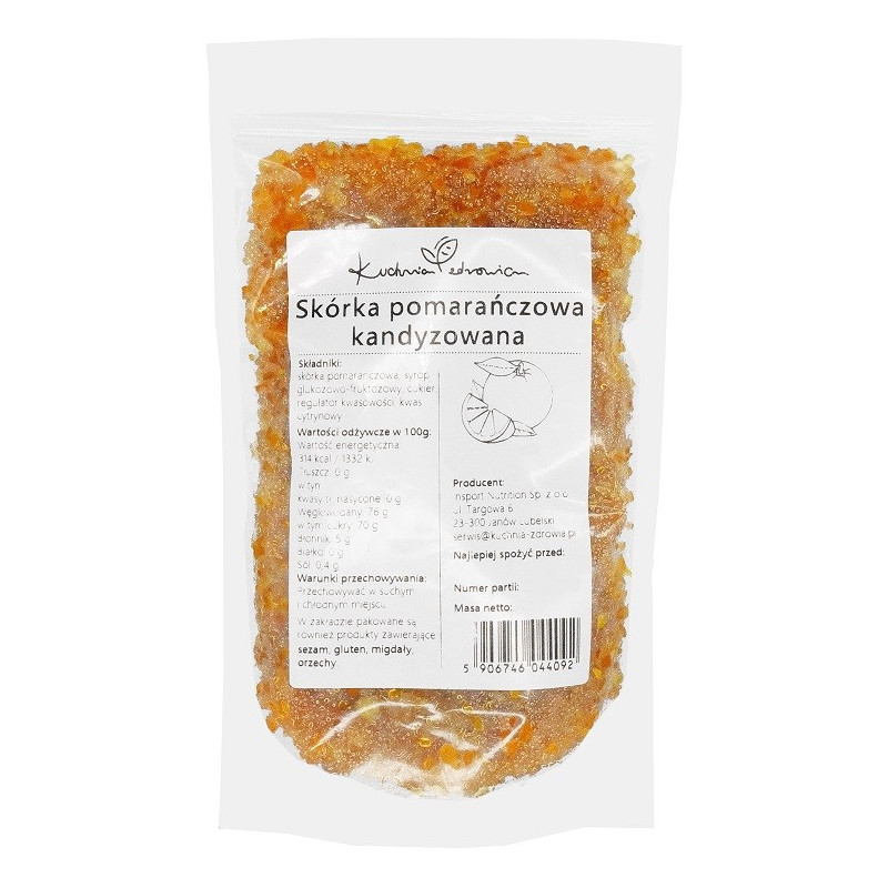 Skórka pomarańczowa kandyzowana to wyjątkowy i aromatyczny produkt, będący połączeniem intensywnego smaku i zapachu pomarańczy z delikatną słodyczą procesu kandyzowania. Produkcja skórki pomarańczowej kandyzowanej rozpoczyna się od starannego wyboru dojrzałych, soczystych pomarańczy. Skórka jest następnie oddzielana od miąższu, starając się zachować jak najwięcej białej, gąbczastej warstwy (albedo), która jest bogata w pektyny i naturalne aromaty. Po usunięciu nadmiaru goryczki przez blanszowanie w wodzie, skórka jest gotowana w syropie cukrowym. Proces ten pozwala na stopniowe wnikanie cukru do skórki, nadając jej słodki smak i przyjemną konsystencję.