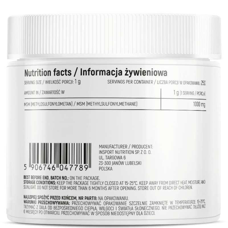 - Dla osób szukających prostych rozwiązań suplementacyjnych: MSM zawiera wyłącznie jedną, czystą substancję.
